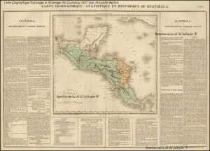 Mapa de la República Federal de Centro América, publicado en 1825, por Jean Alexandre Buchon, que coincide con las fechas en que Wilson realizó su viaje. (Fuente: Reminiscencias de El Salvador).